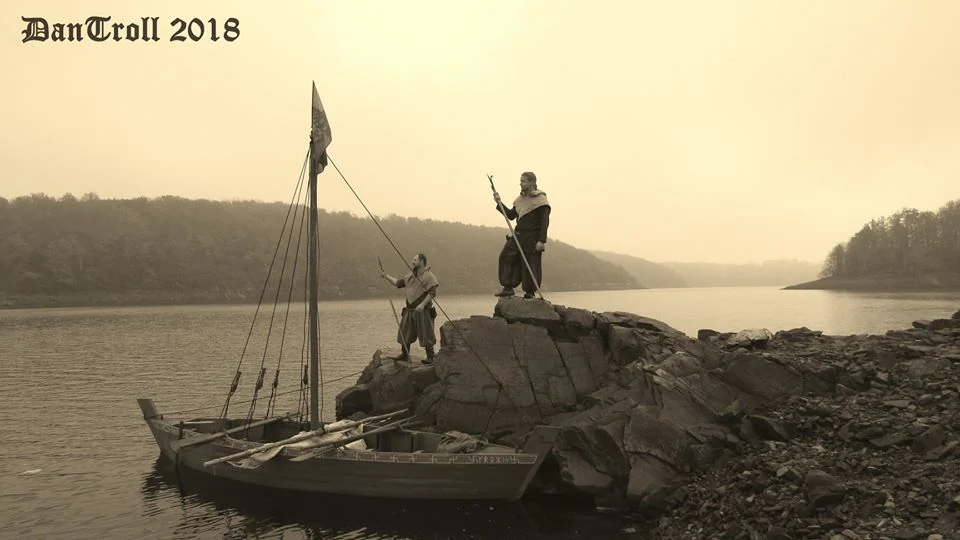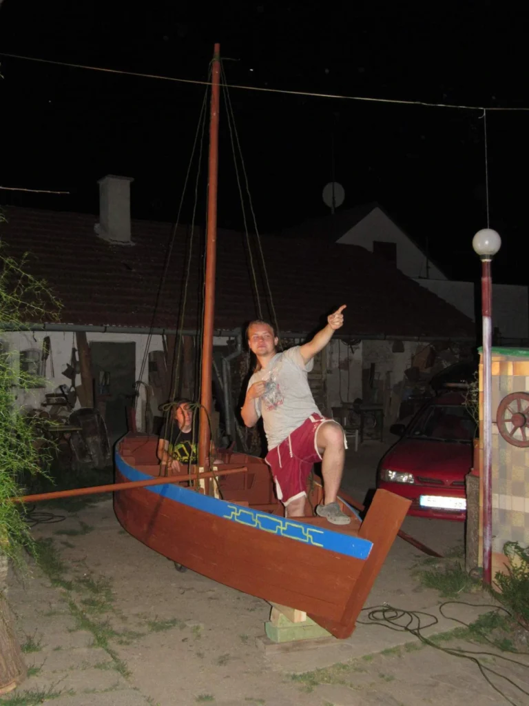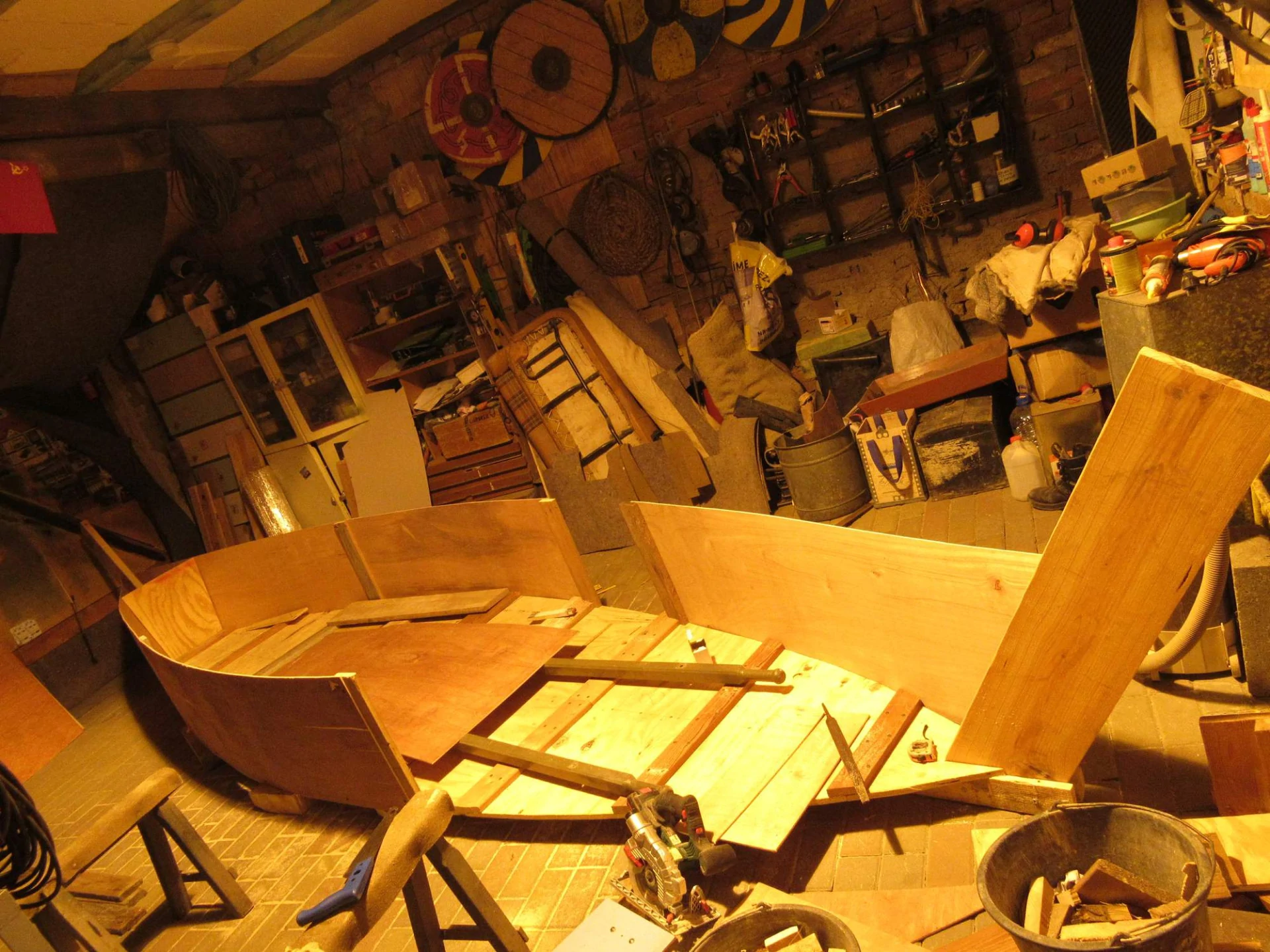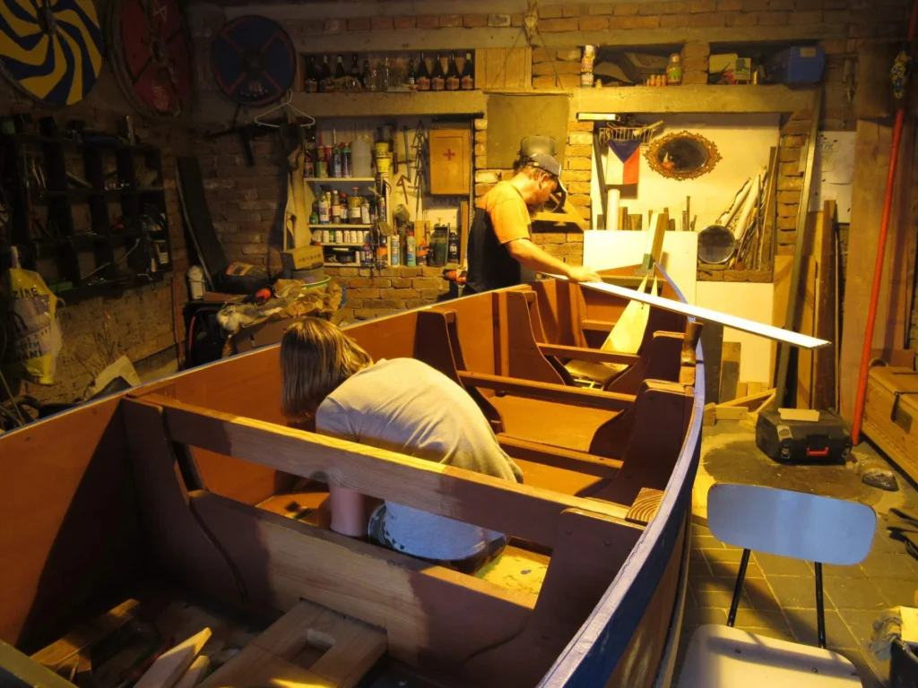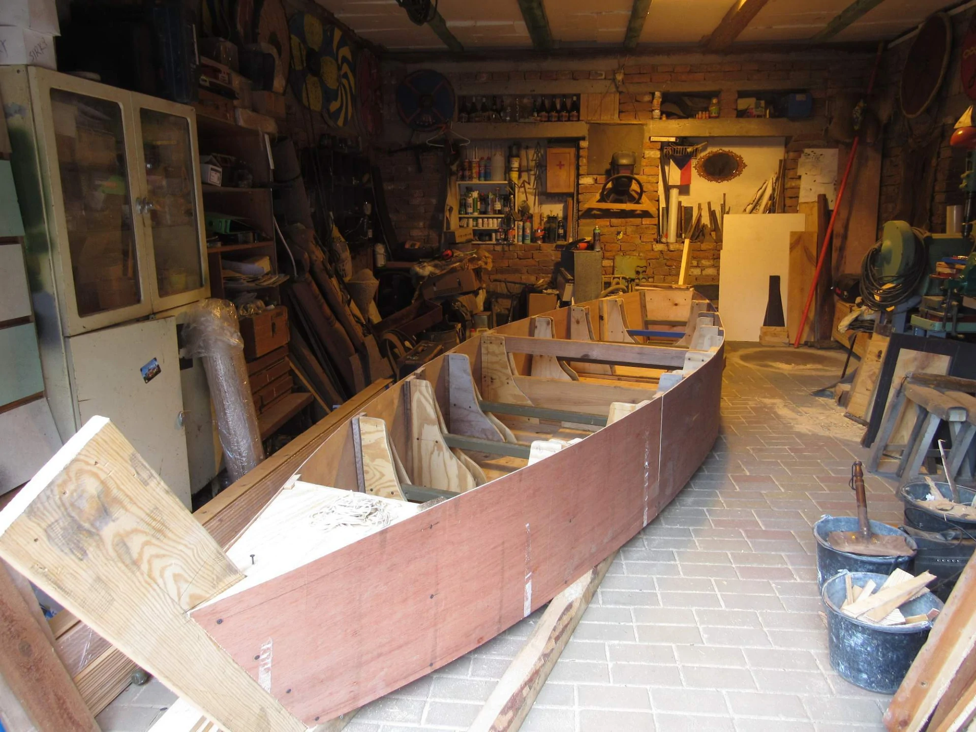 Dlouho jsem měl v plánu postavit vikingskou loď, ale napřed jsem si chtěl tuto práci vyzkoušet na něčem, co právě vzniklo. Ano, tento "pokus o loď" mě od plánu neodradil, ale utvrdil mě v nápadu se do stavby skutečné lodi pustit. Stavba BYLA ZAHÁJENA 1. 4. 2017 a loď byla úplně dokončena v den Neckyády v Oslavanech, tedy 10. 6. 2017. Velké poděkování patří všem, co se stavbou pomohli, byť udělali jen kousíček, ale každá pomoc se hodila, neboť termín dokončení byl striktně stanoven. Několik z nás a hlavně já jsme zažili několik nočních šichet a sousedi museli bohužel i v jednu v noci slýchávat rachot pily a jiných nástrojů. Jmenovitě bych chtěl poděkovat všem pomocníkům, kteří se podíleli na stavbě: Jeňa, Michal, Mato, Pert, Hana, Martin, Viktor, Filip, Gabriel (pokud jsem na někoho zapomněl, omlouvám se). Zapomenout se nesmí ani na materiální pomoc od Jirky Lebedy z Nové Vsi, Zděňka Žaluda z Oslavan, SDH Oslavany a DDM Oslavany. A konečně - bez Ladislava Horáka bychom se mimo náš dvůr nikam nedostali, takže ještě jednou všem děkuji za pomoc. Loď byla dokončena včas a na Neckyádě v Oslavanech získala první místo. Od těch dob už zažila mnoho plaveb a členům Krohisu slouží k tomu, aby se naučili námořnímu řemeslu.