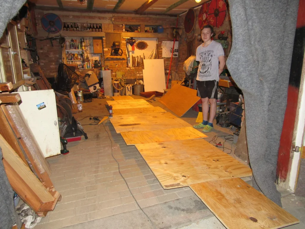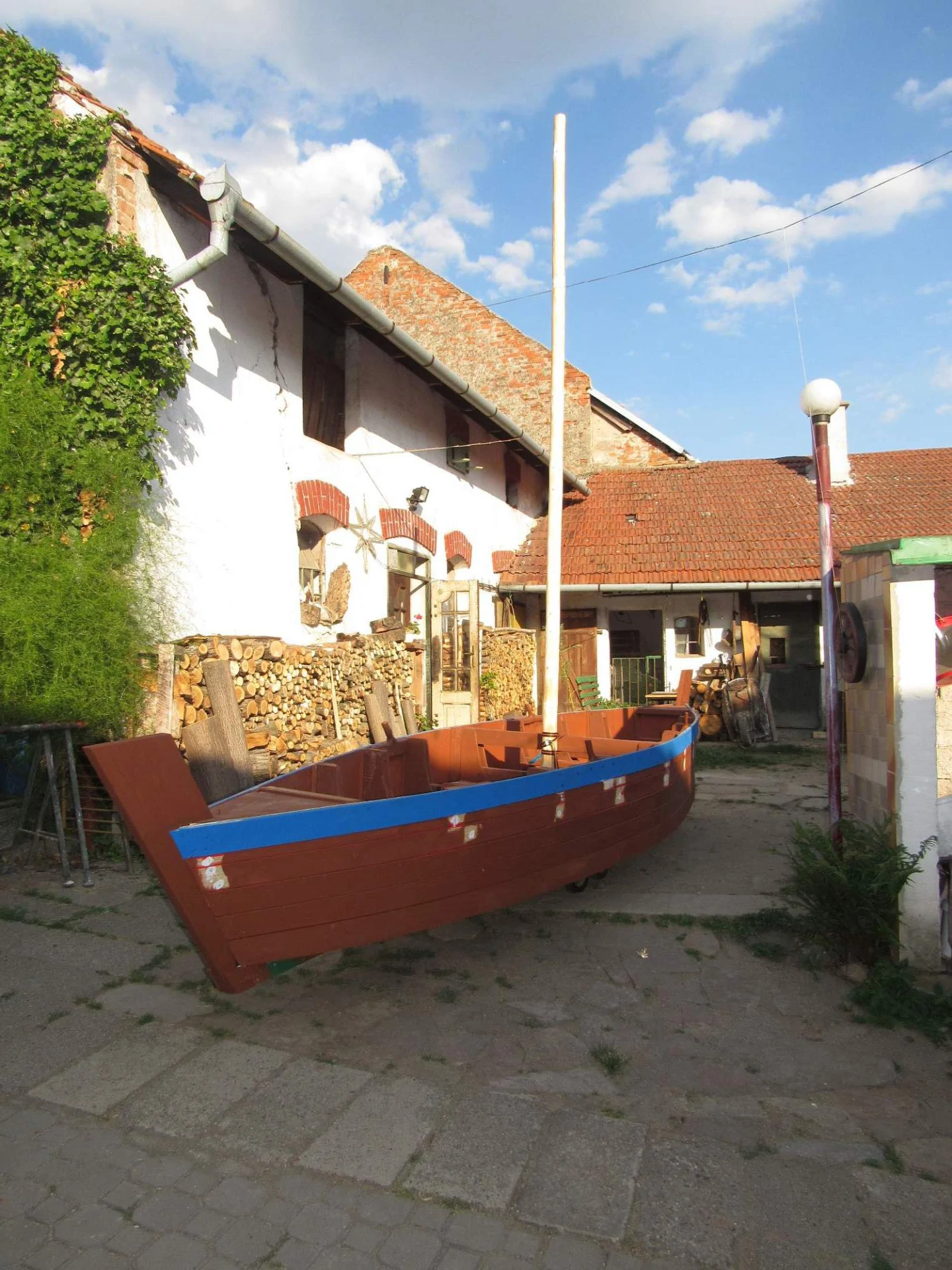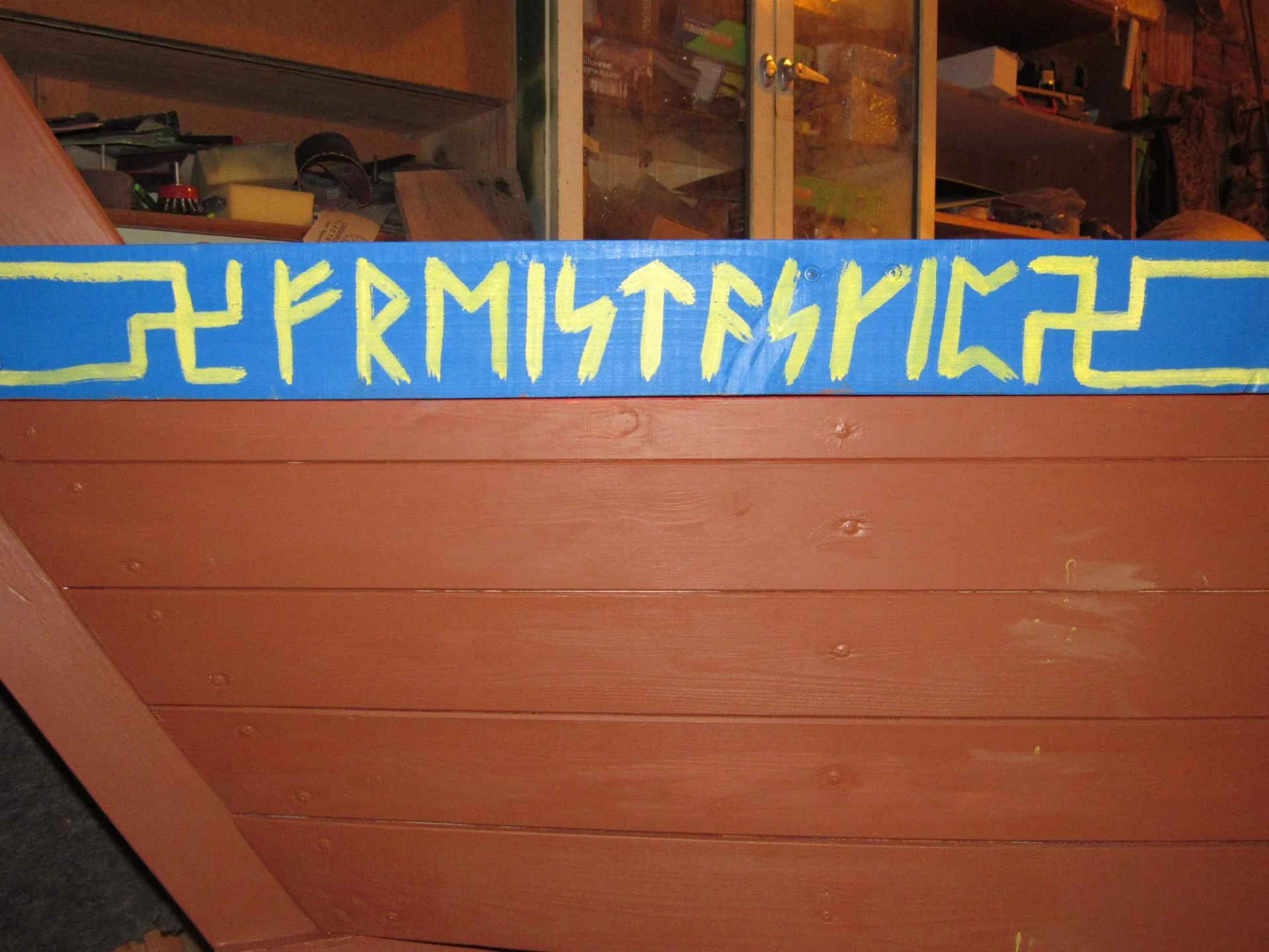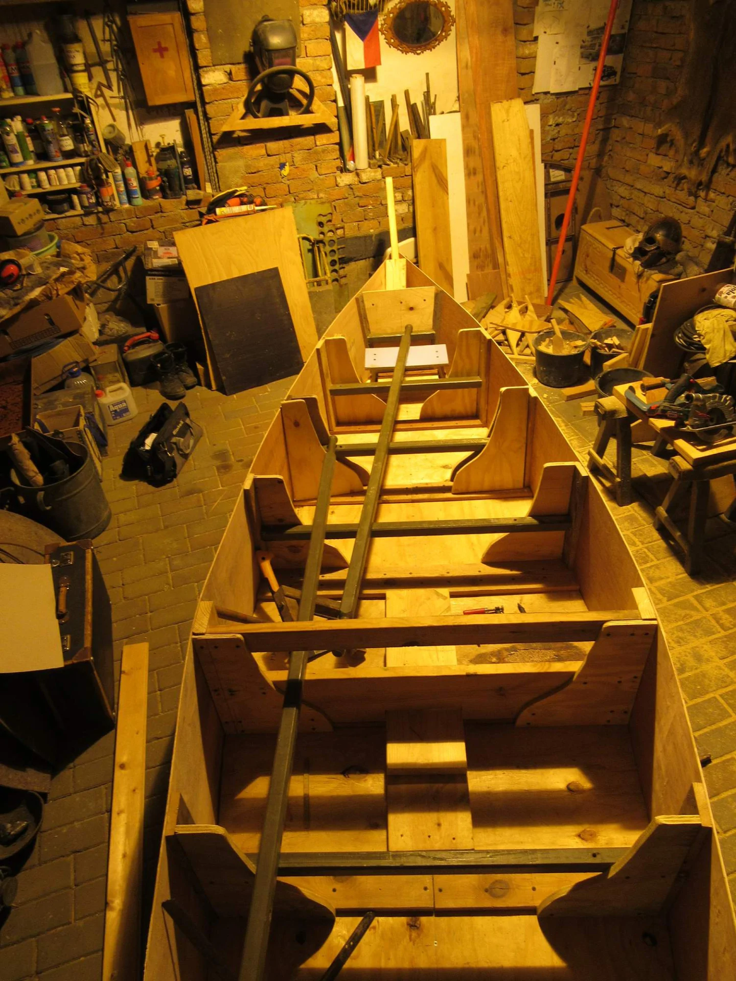 Dlouho jsem měl v plánu postavit vikingskou loď, ale napřed jsem si chtěl tuto práci vyzkoušet na něčem, co právě vzniklo. Ano, tento "pokus o loď" mě od plánu neodradil, ale utvrdil mě v nápadu se do stavby skutečné lodi pustit. Stavba BYLA ZAHÁJENA 1. 4. 2017 a loď byla úplně dokončena v den Neckyády v Oslavanech, tedy 10. 6. 2017. Velké poděkování patří všem, co se stavbou pomohli, byť udělali jen kousíček, ale každá pomoc se hodila, neboť termín dokončení byl striktně stanoven. Několik z nás a hlavně já jsme zažili několik nočních šichet a sousedi museli bohužel i v jednu v noci slýchávat rachot pily a jiných nástrojů. Jmenovitě bych chtěl poděkovat všem pomocníkům, kteří se podíleli na stavbě: Jeňa, Michal, Mato, Pert, Hana, Martin, Viktor, Filip, Gabriel (pokud jsem na někoho zapomněl, omlouvám se). Zapomenout se nesmí ani na materiální pomoc od Jirky Lebedy z Nové Vsi, Zděňka Žaluda z Oslavan, SDH Oslavany a DDM Oslavany. A konečně - bez Ladislava Horáka bychom se mimo náš dvůr nikam nedostali, takže ještě jednou všem děkuji za pomoc. Loď byla dokončena včas a na Neckyádě v Oslavanech získala první místo. Od těch dob už zažila mnoho plaveb a členům Krohisu slouží k tomu, aby se naučili námořnímu řemeslu.